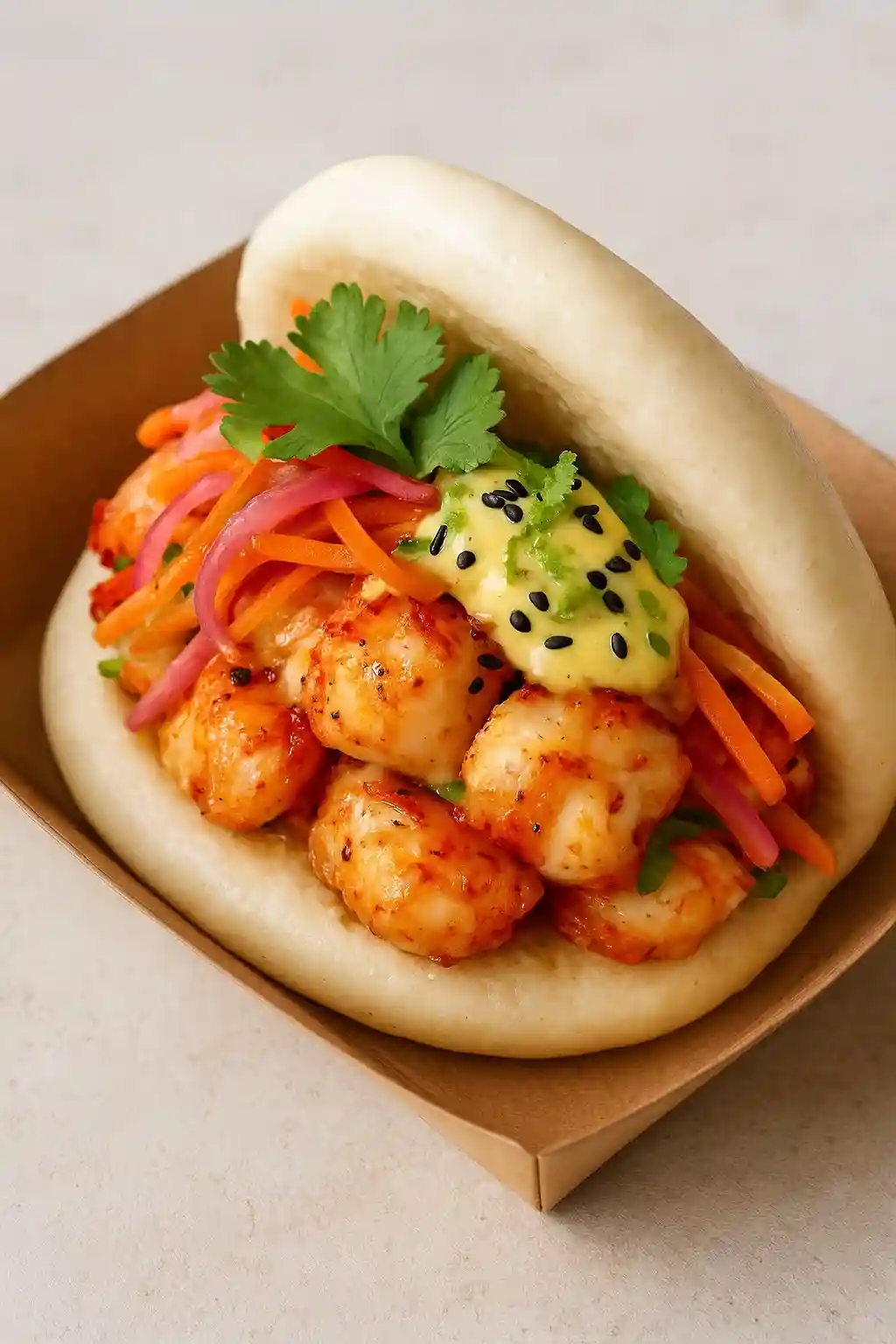 Braised pork, Shiso Sauce, Hoisin Peanuts, Pickled onions.